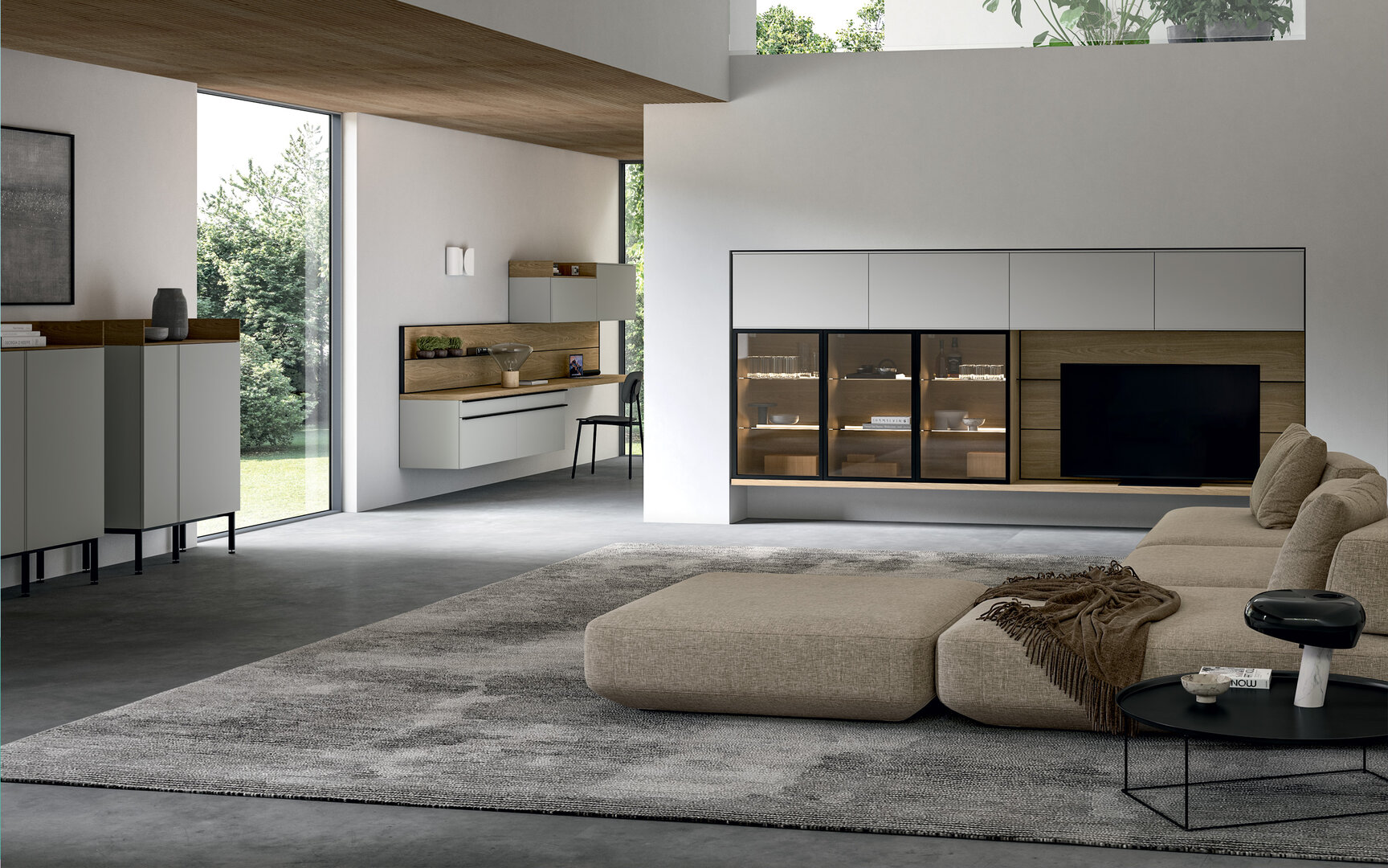Les séjours Tratto_10 se caractérisent par les différentes finitions du PET recyclé, un matériau écoresponsable, pratique et durable et par la poignée Profilo en aluminium recyclable, positionnable à la verticale ou à l’horizontale, qui vient ajouter une touche décorative aux meubles. Un style moderne et raffiné qui peut être personnalisé, notamment en le combinant avec des meubles provenant d’autres modèles d’Arredo3.